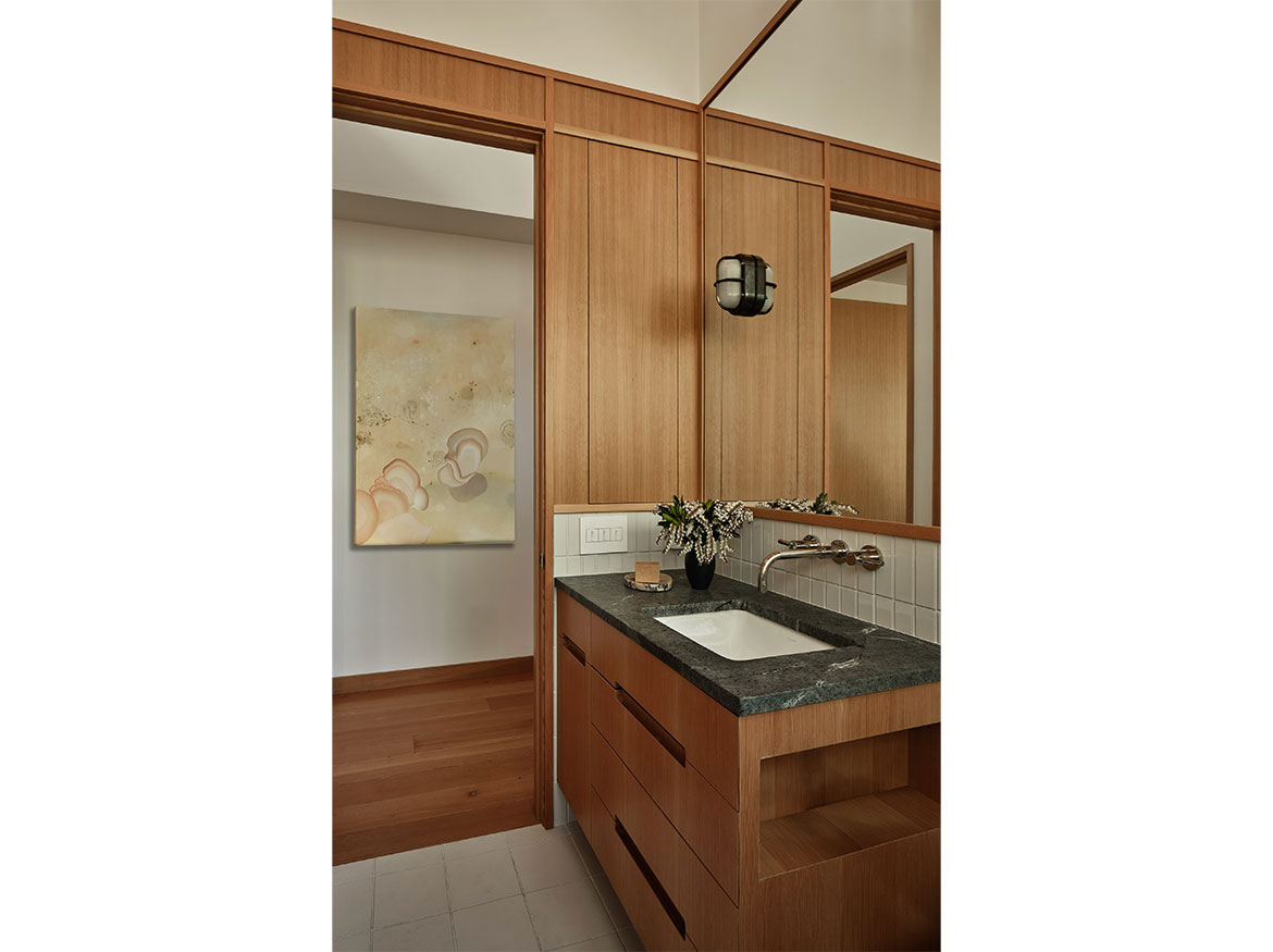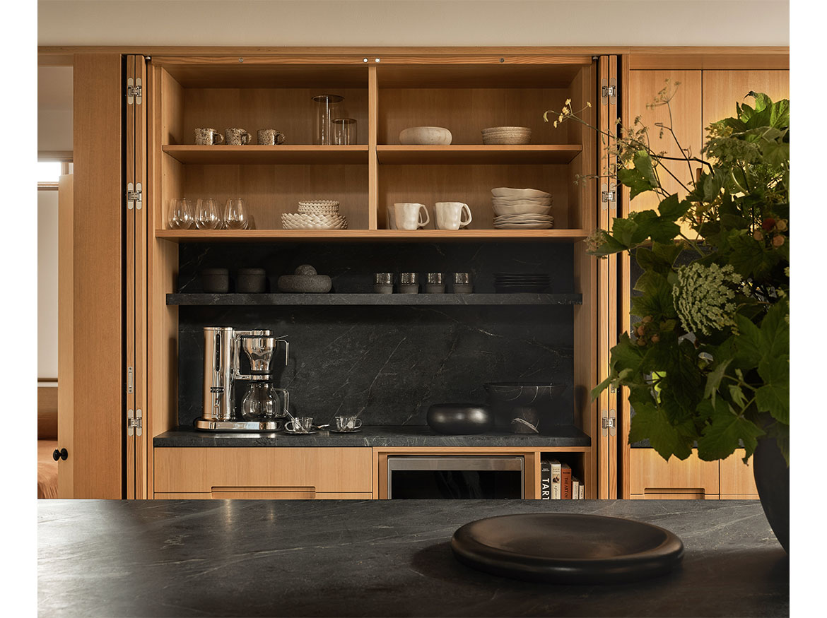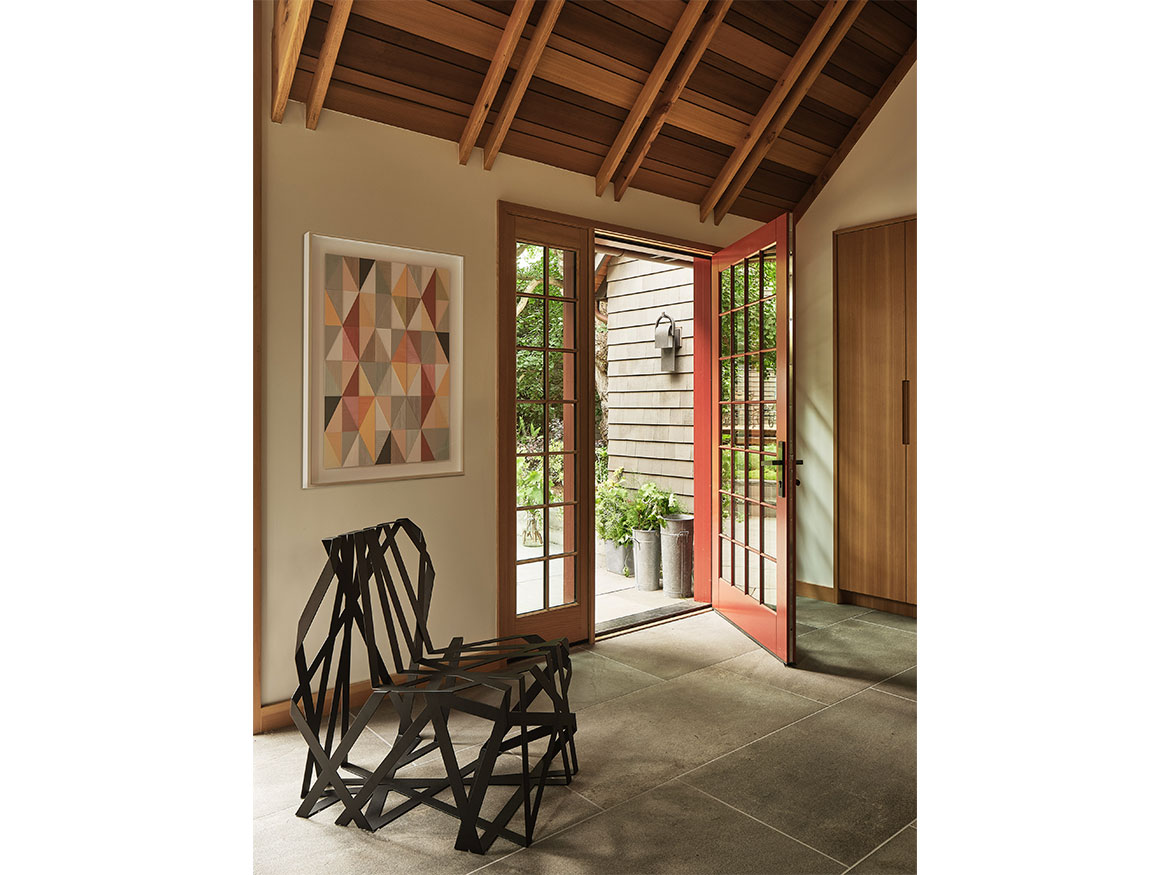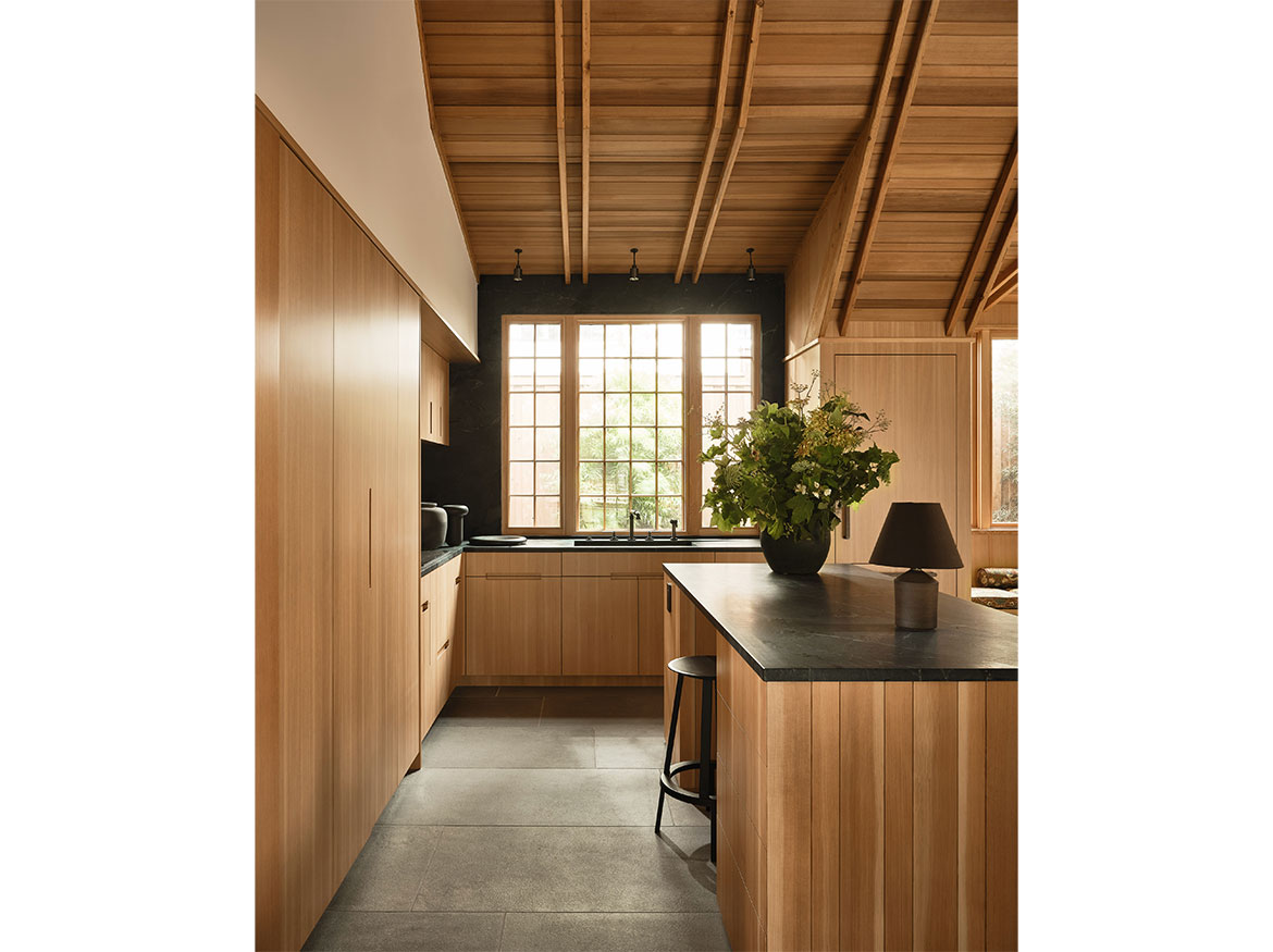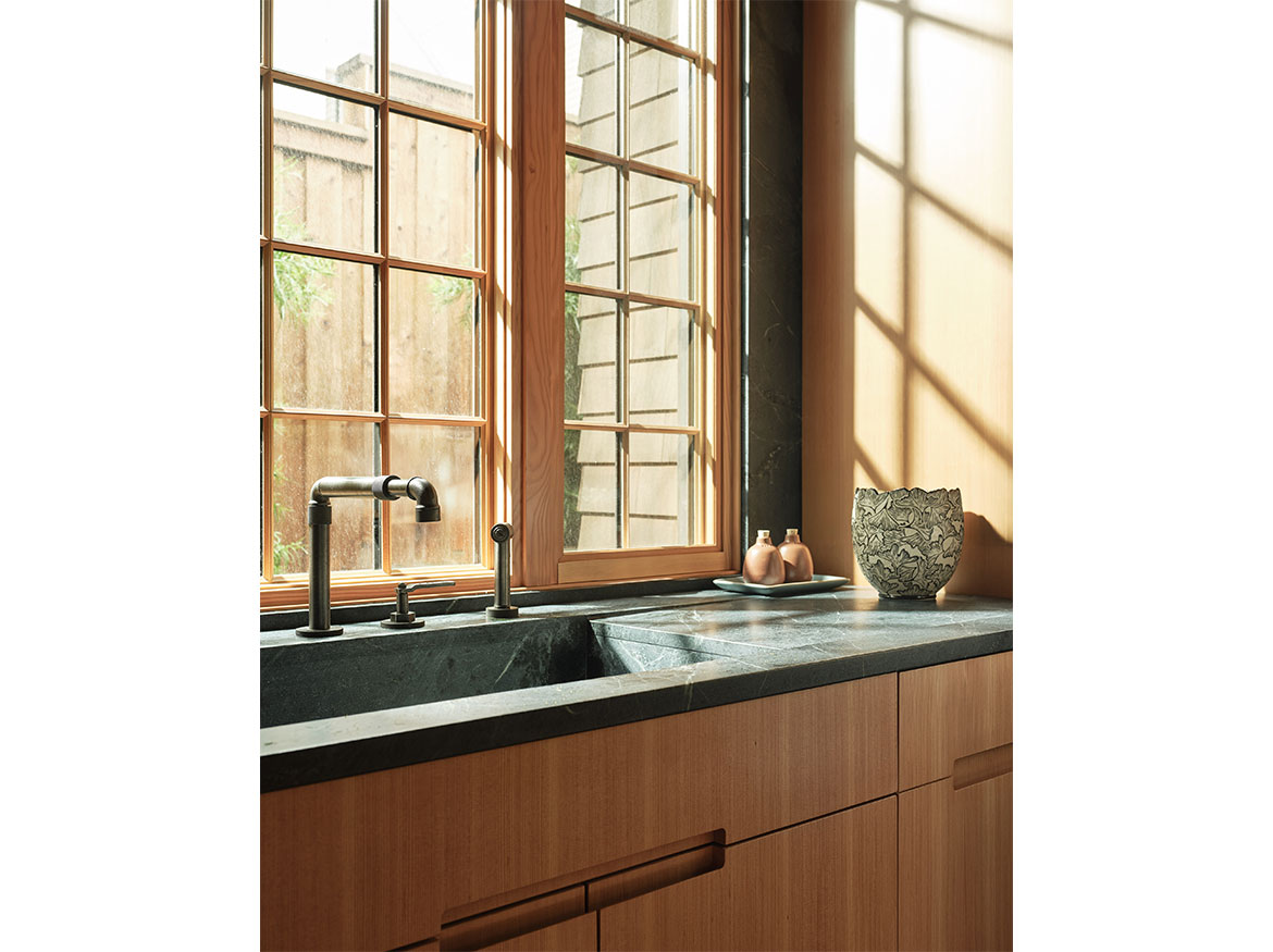 The first permitted free-standing ADU in San Francisco under CA State law. This new wood framed construction, placed in the Rear yard of an historic Maybeck house, began initially as a small wood working shop and ceramic studio. The rigors of the ADU requirements prevailed, and the 2 bedroom ADU is the result. A vaulted Living space with expressed double rafters is designed with a nod toward Maybeck and connects to the adjacent outdoor garden room. The bedroom, also vaulted through slight of hand within the poche of the roof lines, emulates the main space, but on a scale for a bedroom. The skylit bath shares the loftiness of the tall roof lines, which expertly bring natural light into the Bath and circulation spaces. Custom cabinetry in the everyday/approachable material, Douglas Fir, is designed to quietly elevate the coveted storage spaces for daily life. The building design is meant to have the feel of a pre-existing garden shed newly converted to a sweet dwelling structure.